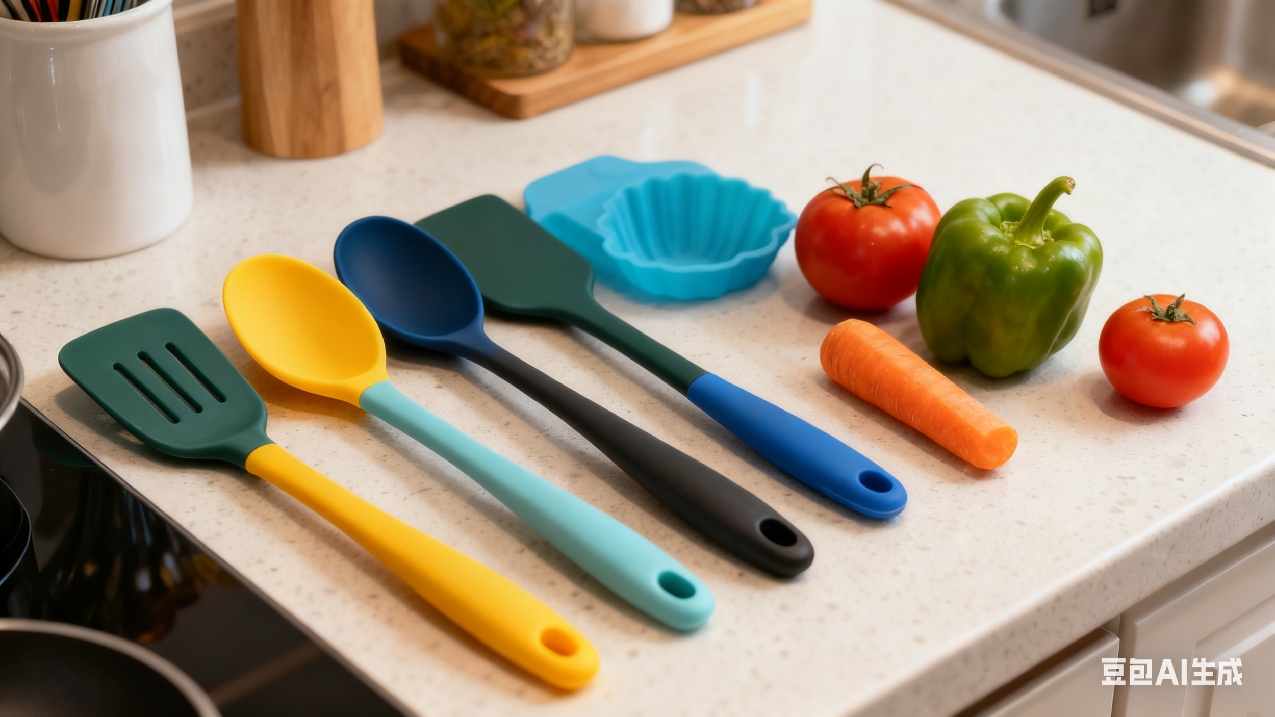 SK-401 Stainless Steel 4-Piece Silicone Rubber Steak Frying Spatula Dishwasher Safe Non-Stick Cooking Utensil Set